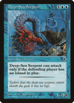 This creature can't attack unless defending player controls an Island.