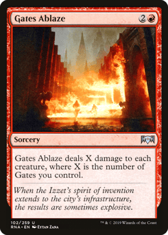 Gates Ablaze deals X damage to each creature, where X is the number of Gates you control.