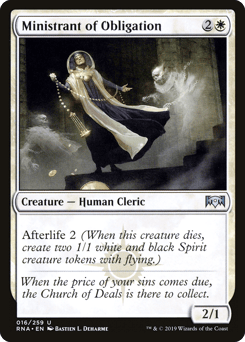 Deathtouch Afterlife 1 (When this creature dies, create a 1/1 white and black Spirit creature token with flying.)