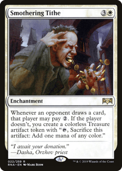 Whenever an opponent draws a card, that player may pay {2}. If the player doesn't, you create a Treasure token. (It's an artifact with "{T}, Sacrifice this token: Add one mana of any color.")