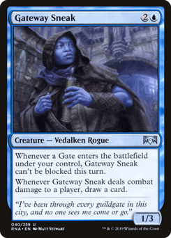 Whenever a Gate you control enters, this creature can't be blocked this turn. Whenever this creature deals combat damage to a player, draw a card.