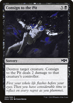 Destroy target creature. Consign to the Pit deals 2 damage to that creature's controller.