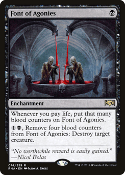 Whenever you pay life, put that many blood counters on this enchantment. {1}{B}, Remove four blood counters from this enchantment: Destroy target creature.