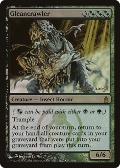 ({B/G} can be paid with either {B} or {G}.) Trample At the beginning of your end step, return to your hand all creature cards in your graveyard that were put there from the battlefield this turn.