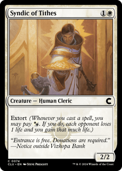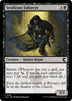 Extort (Whenever you cast a spell, you may pay {W/B}. If you do, each opponent loses 1 life and you gain that much life.) At the beginning of each end step, if you gained 4 or more life this turn, investigate. (Create a Clue token. It's an artifact with "{2}, Sacrifice this token: Draw a card.")