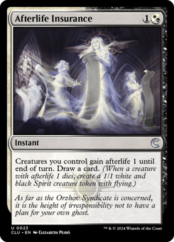 Creatures you control gain afterlife 1 until end of turn. Draw a card. (When a creature with afterlife 1 dies, create a 1/1 white and black Spirit creature token with flying.)