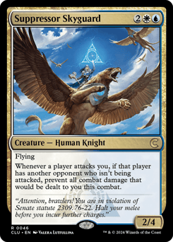 Flying Whenever a player attacks you, if that player has another opponent who isn't being attacked, prevent all combat damage that would be dealt to you this combat.