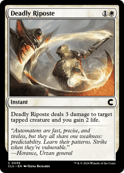 Deadly Riposte deals 3 damage to target tapped creature and you gain 2 life.