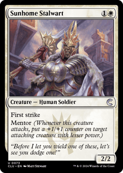 First strike (This creature deals combat damage before creatures without first strike.) Mentor (Whenever this creature attacks, put a +1/+1 counter on target attacking creature with lesser power.)