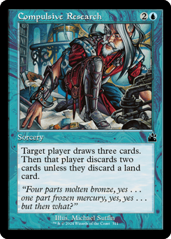 Target player draws three cards. Then that player discards two cards unless they discard a land card.