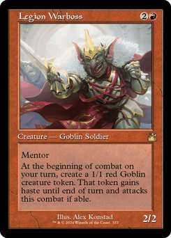 Mentor (Whenever this creature attacks, put a +1/+1 counter on target attacking creature with lesser power.) At the beginning of combat on your turn, create a 1/1 red Goblin creature token. That token gains haste until end of turn and attacks this combat if able.