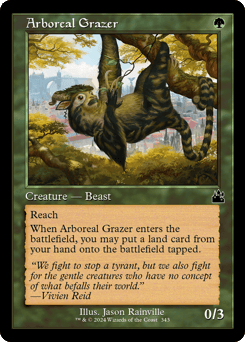 Reach When this creature enters, you may put a land card from your hand onto the battlefield tapped.