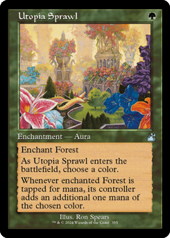 Enchant Forest As this Aura enters, choose a color. Whenever enchanted Forest is tapped for mana, its controller adds an additional one mana of the chosen color.