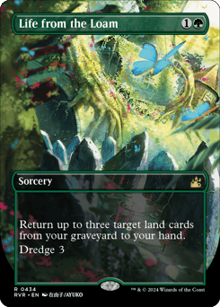 Return up to three target land cards from your graveyard to your hand. Dredge 3 (If you would draw a card, you may mill three cards instead. If you do, return this card from your graveyard to your hand.)