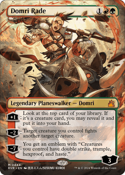 Trample Whenever Borborygmos Enraged deals combat damage to a player, reveal the top three cards of your library. Put all land cards revealed this way into your hand and the rest into your graveyard. Discard a land card: Borborygmos Enraged deals 3 damage to any target.