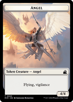 If one or more creature tokens would be created under your control, that many 4/4 white Angel creature tokens with flying and vigilance are created instead.