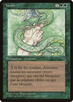 Whenever this creature deals damage to a player, that player gets a poison counter. (A player with ten or more poison counters loses the game.)