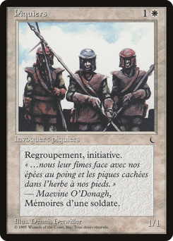 First strike; banding (Any creatures with banding, and up to one without, can attack in a band. Bands are blocked as a group. If any creatures with banding you control are blocking or being blocked by a creature, you divide that creature's combat damage, not its controller, among any of the creatures it's being blocked by or is blocking.)