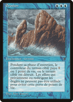 Enchant land At the beginning of the upkeep of enchanted land's controller, destroy that land unless that player pays {1} or 1 life.