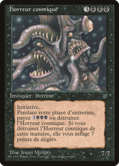 First strike At the beginning of your upkeep, destroy this creature unless you pay {3}{B}{B}{B}. If this creature is destroyed this way, it deals 7 damage to you.