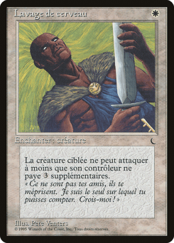 Enchant creature Enchanted creature can't attack unless its controller pays {3}.