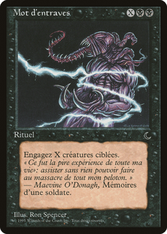 Defender (This creature can't attack.) Whenever this creature blocks a creature, that creature can't attack during its controller's next turn.