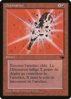 Destroy target artifact with mana value X. It can't be regenerated. Detonate deals X damage to that artifact's controller.