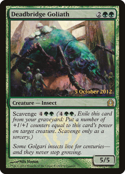 Haste Scavenge {3}{B}{G} ({3}{B}{G}, Exile this card from your graveyard: Put a number of +1/+1 counters equal to this card's power on target creature. Scavenge only as a sorcery.)
