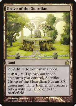{T}: Add {C}. {3}{G}{W}, {T}, Tap two untapped creatures you control, Sacrifice this land: Create an 8/8 green and white Elemental creature token with vigilance.