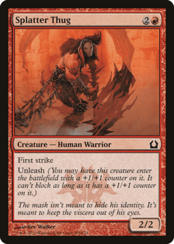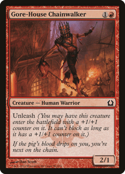 Unleash (You may have this creature enter with a +1/+1 counter on it. It can't block as long as it has a +1/+1 counter on it.)