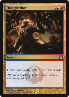 Flying Discard two nonland cards with the same name: Draw four cards.