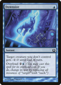 Target creature you don't control gets -4/-0 until end of turn. Overload {2}{U} (You may cast this spell for its overload cost. If you do, change "target" in its text to "each.")