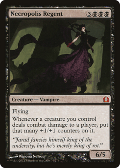 Flying Whenever a creature you control deals combat damage to a player, put that many +1/+1 counters on it.