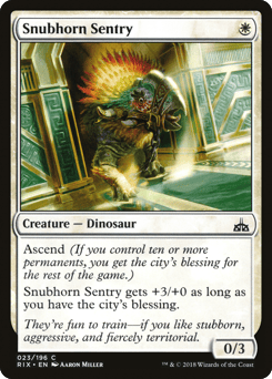 Ascend (If you control ten or more permanents, you get the city's blessing for the rest of the game.) This creature gets +3/+0 as long as you have the city's blessing.