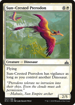 Flying This creature has vigilance as long as you control another Dinosaur.