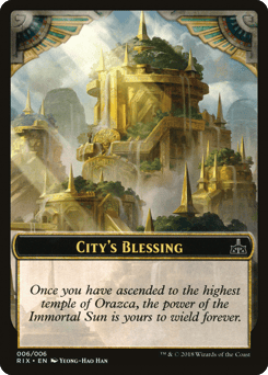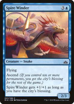 Flying Ascend (If you control ten or more permanents, you get the city's blessing for the rest of the game.) This creature gets +1/+1 as long as you have the city's blessing.