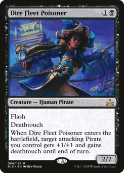 Flash Deathtouch When this creature enters, target attacking Pirate you control gets +1/+1 and gains deathtouch until end of turn.