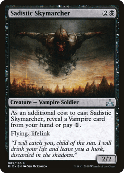 As an additional cost to cast this spell, reveal a Vampire card from your hand or pay {1}. Flying, lifelink