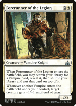 When this creature enters, you may search your library for a Vampire card, reveal it, then shuffle and put that card on top. Whenever another Vampire you control enters, target creature gets +1/+1 until end of turn.