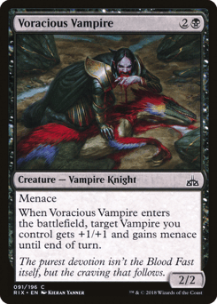 Menace When this creature enters, target Vampire you control gets +1/+1 and gains menace until end of turn.
