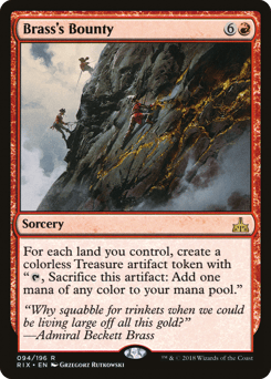 For each land you control, create a Treasure token. (It's an artifact with "{T}, Sacrifice this token: Add one mana of any color.")