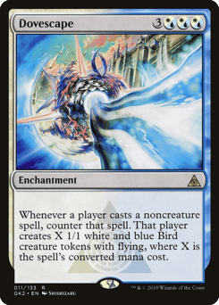 ({W/U} can be paid with either {W} or {U}.) Whenever a player casts a noncreature spell, counter that spell. That player creates X 1/1 white and blue Bird creature tokens with flying, where X is the spell's mana value.