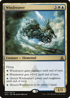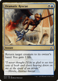 Flying When this creature enters, untap all creatures you control. Forecast — Tap two untapped white and/or blue creatures you control, Reveal this card from your hand: Draw a card. (Activate only during your upkeep and only once each turn.)