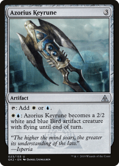{T}: Add {W} or {U}. {W}{U}: This artifact becomes a 2/2 white and blue Bird artifact creature with flying until end of turn.