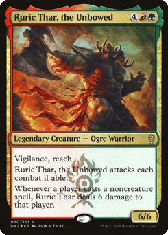Vigilance, reach Ruric Thar attacks each combat if able. Whenever a player casts a noncreature spell, Ruric Thar deals 6 damage to that player.