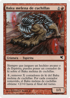 Whenever you cast a Spirit or Arcane spell, you may put a ki counter on this creature. {1}, Remove X ki counters from this creature: For each counter removed, this creature gets +2/+0 until end of turn.