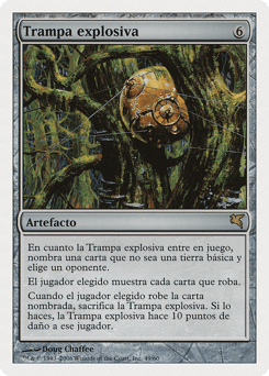 As this artifact enters, choose an opponent and a card name other than a basic land card name. The chosen player reveals each card they draw. When the chosen player draws a card with the chosen name, sacrifice this artifact. If you do, this artifact deals 10 damage to that player.