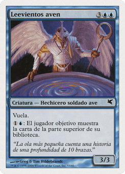 Flying (This creature can't be blocked except by creatures with flying or reach.) {1}{U}: Target player reveals the top card of their library.