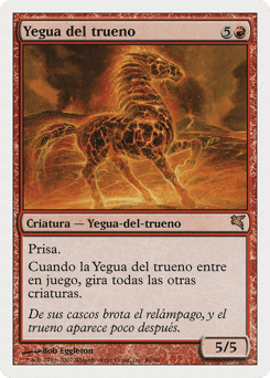 Haste (This creature can attack and {T} as soon as it comes under your control.) When this creature enters, tap all other creatures.
