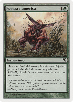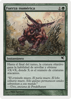 Target creature gets +X/+X until end of turn, where X is the number of Elves on the battlefield.